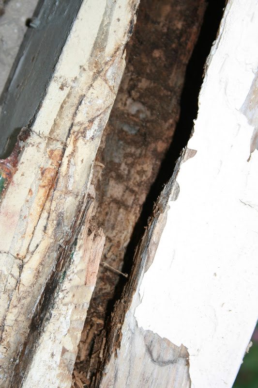 Nu blijkt wat we al vermoedden dat het ene kozijn helemaal van binnen rot is.