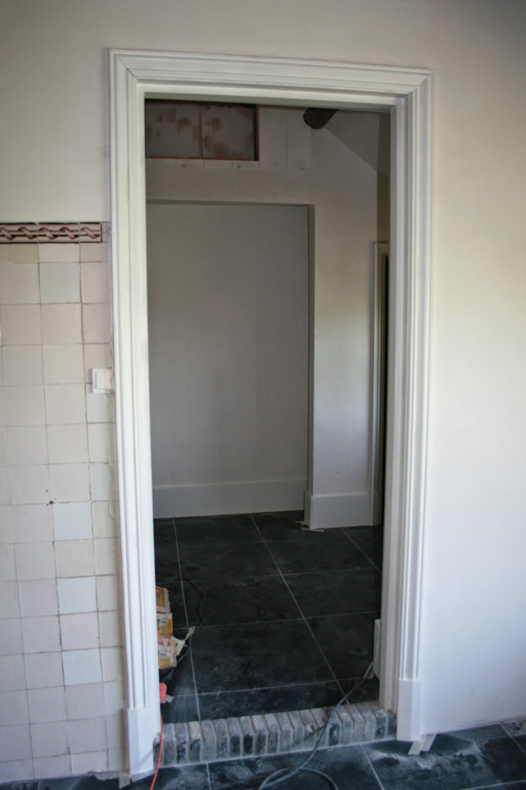 De archetraven zitten om de deurkozijnen in het oude deel van het huis. Ook de plinten zitten tegen de wanden. Hoop gepas, gemeet en gezaag maar het resultaat ziet er prima uit na kitten;)
