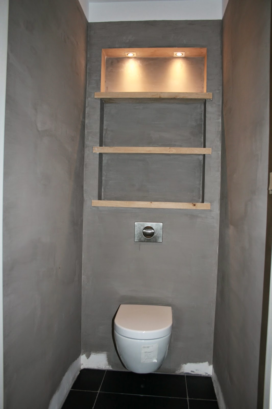Duidelijk na het terugplaatsen van de spotjes en bevestigen van toilet is ook wel dat de muur een coating vraagt. Beschadigingen of plekken zijn niet onzichtbaar bij te werken. Dat betekent dus toch maar een derde laag tegen achterwand en soort van lambrisering tot een meter vanaf de grond met derde laag aanbrengen. En besloten dat ik een coating als soort lambrizering strak aanbreng om te voorkomen dat ik dit elk half jaar moet doen. Zeker omdat het een toilet ruimte betreft.