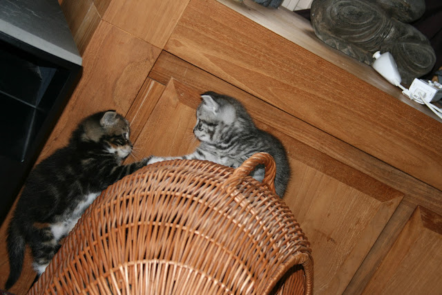 De poezenkinders van Minoes gaan steeds meer op ontdekkingstocht. Het is erg komisch ze te zien dollen met elkaar.