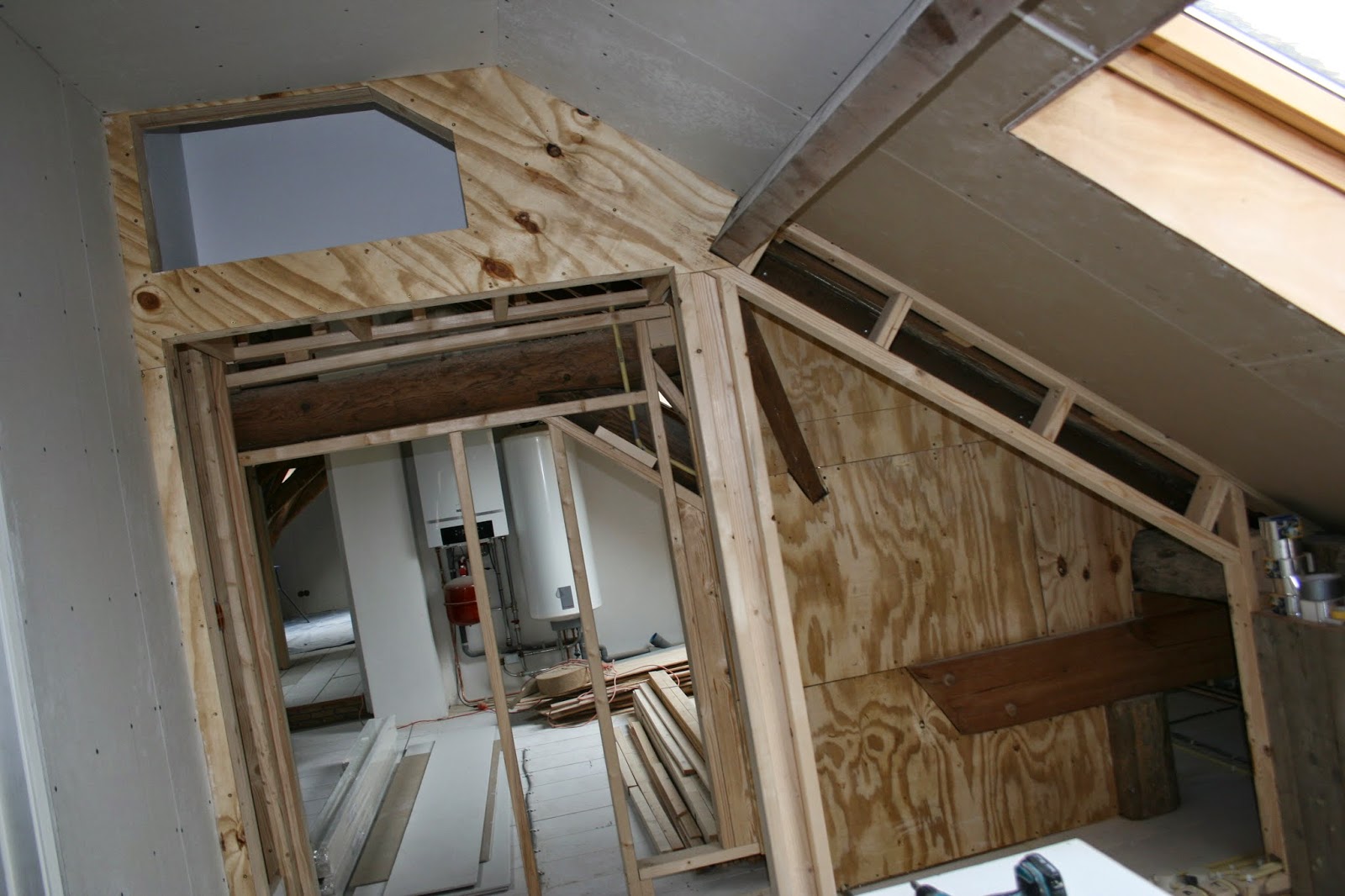Alleen de kastenwand tussen de badkamer en logeerkamer moet nog verder dichtgemaakt worden (zie de laatste foto).