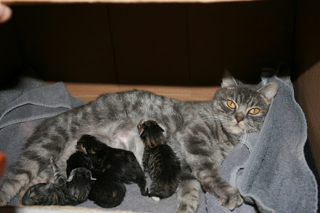 Een kleine wereld prestatie Minoes, 4 gezonde kittens; ik zou het je niet nadoen!