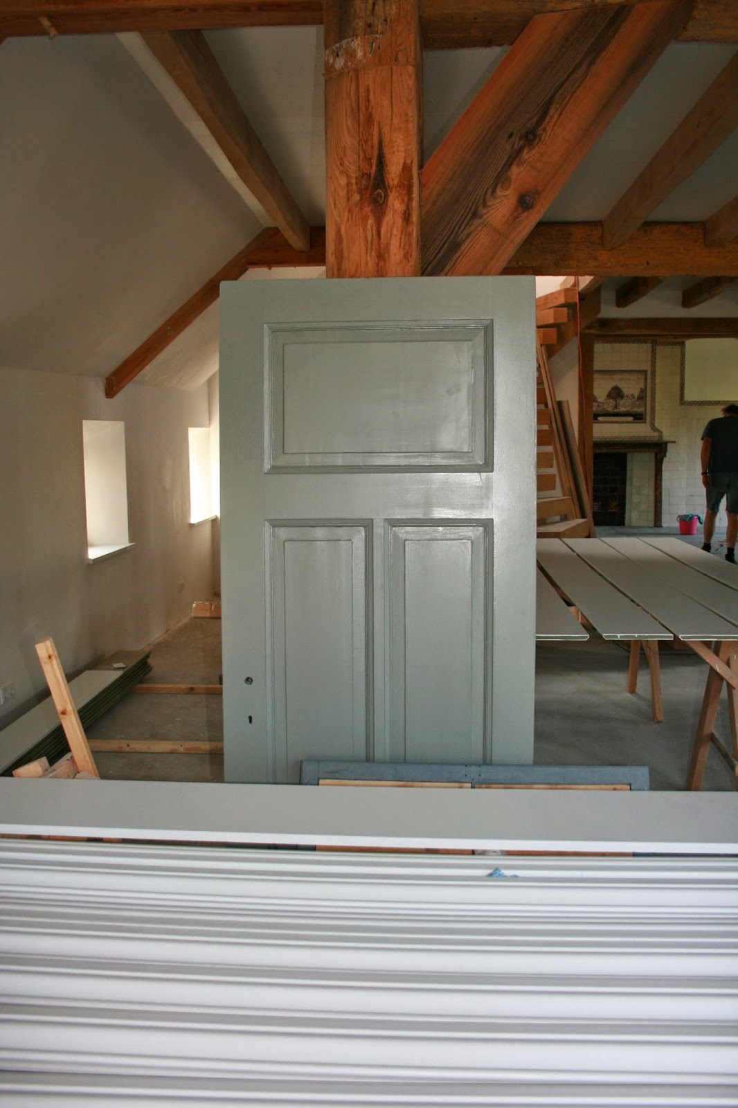 De oude deur van de kelder is opgeknapt! Het was een van de weinige oude paneeldeuren die nog in het huis zat. De deur is eerst naar de logerij geweest om het hippe perzik kleurtje en andere oude verflagen eraf te halen. Vervolgens zijn de overgebleven kit randen verwijderd en is de deur opgeknapt door pa.