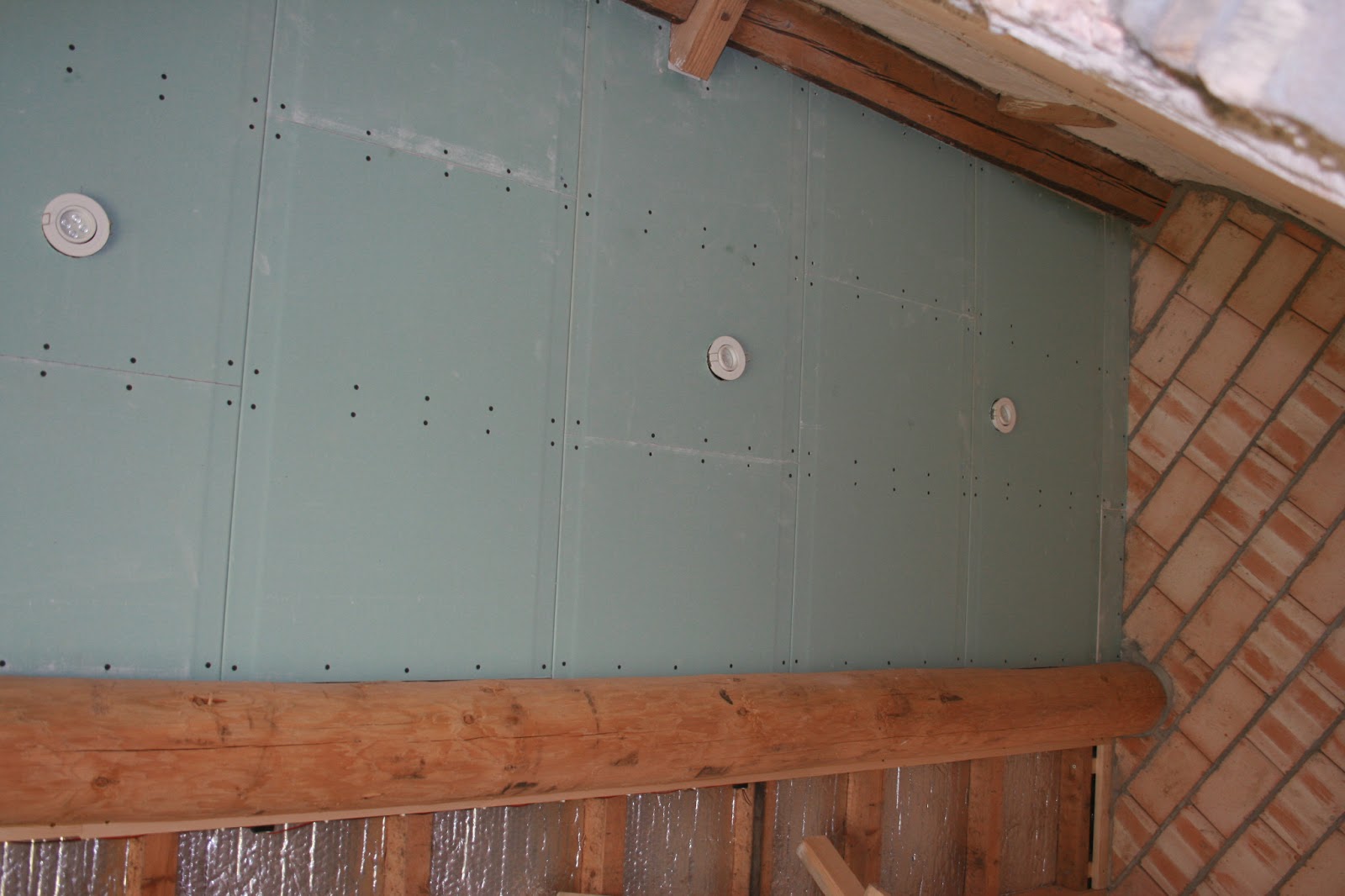 Het schuine plafond op de deel is inmiddels aan beide kanten dicht! Dat ziet er al heel anders uit. Zodra de trap is geplaatst kan de vloer afgemaakt worden en de stukadoor in feite komen!