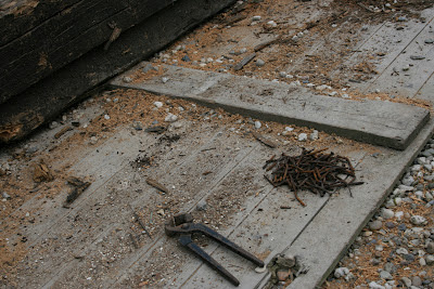 Maar aan de moeite die het kost om de spijkers eruit te halen, concluderen wij vooralsnog dat de kern van de balken prima zijn. Dinsdag gaan we het zien met het doorzagen van de balken met behulp van de kettingzaag!