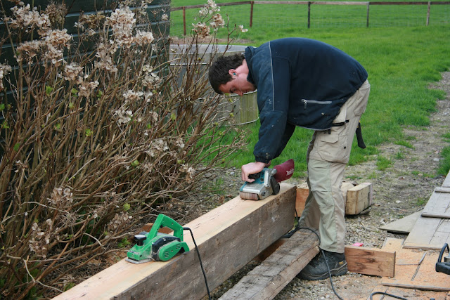 Hans is druk bezig om de oude sloopbalken die straks als ‘nieuwe’ standvinken de gebint constructie moeten afmaken te ontspijkeren. Dat valt niet helemaal mee!