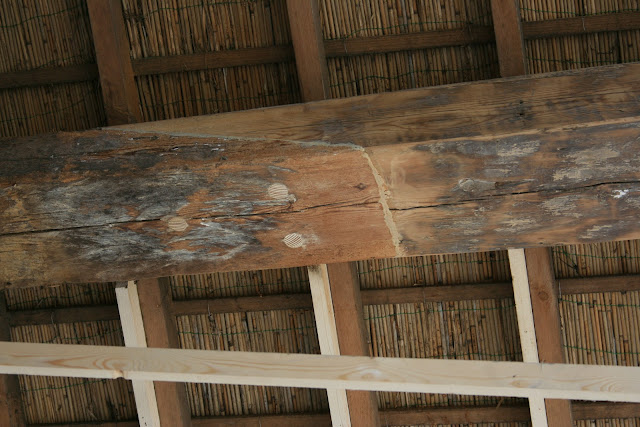 Ter vervanging van de huidige (rotte) gording balken die de nieuwe achtermuur moeten vasthouden, hebben we bij het lokale sloopbedrijf in Oudewater een paar oude dikke grenen balken op de kop getikt.