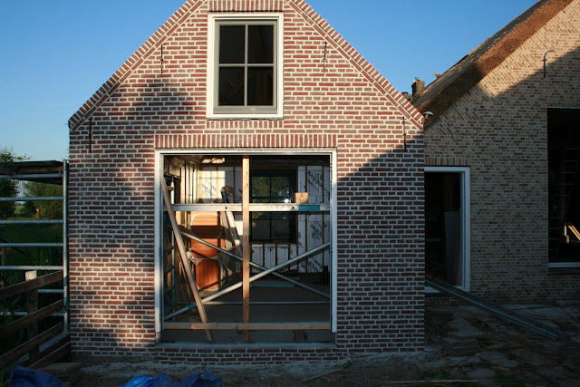 Betekent dat we dakpannen op de kaasmakerij kunnen leggen dit weekend en de balk bij het wolfseind netjes kunnen schuren, plamuren en aflakken. De rietdekker heeft de steiger al opgebouwd.